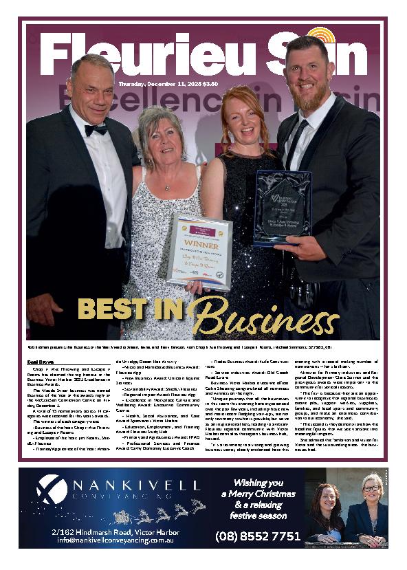 Fleurieu Sun – 11th December 2025 Subscribe or Login to see the rest of the content. Username Password * Remember Me Forgot Password News Commemorating the Fleurieu’s 1936 Grand Prix race 12/12/2025 A working group has been formed to plan celebrations of the 90th anniversary of the South Australian Centenary Grand Prix being raced in Port... Speeding motorcyclists to be targeted 12/12/2025 Police will be targeting speeding motorcycle riders over the upcoming festive season, in a bid to reduce fatalities and serious accidents on the road.... Help protect GI Penguins 12/12/2025 There is a way the community can help protect our endangered Granite Island penguins. The 2025 Christmas fundraiser is on and it is an...