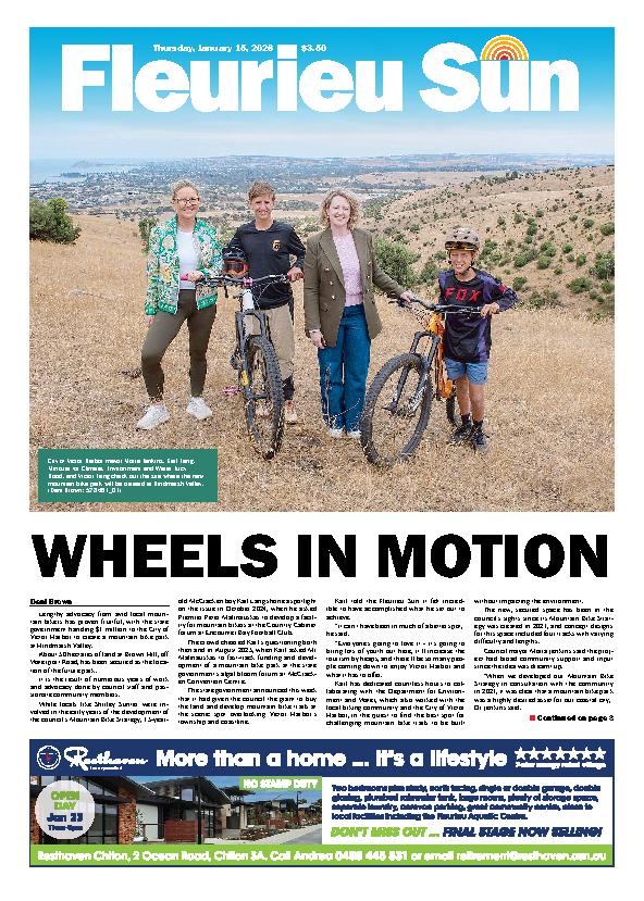 Fleurieu Sun – 15th January 2026 Subscribe or Login to see the rest of the content. Username Password * Remember Me Forgot Password News Braithwaite to belt out ‘The Horses’ at Goolwa Oval 15/01/2026 Iconic Australian singer-songwriter Daryl Braithwaite will be performing at Goolwa Oval this Saturday, January 17. 'Riding Out the Bloom' is a fundraiser concert for the... Keep your pedals in check this TDU 15/01/2026 As the 2026 Tour Down Under prepares to pedal through South Australia, RAA is urging drivers and cyclists to be courteous and follow the... Head on a family circus adventure at McLaren Vale 15/01/2026 Step right up for some Friday family fun as a circus show and workshop comes to McLaren Vale on Friday, January 30. The thrilling...