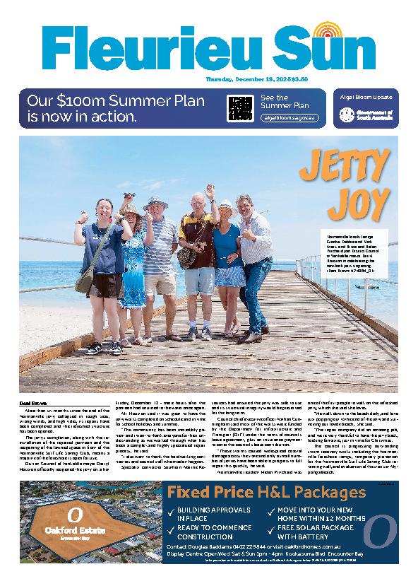 Fleurieu Sun – 18th December 2025 Subscribe or Login to see the rest of the content. Username Password * Remember Me Forgot Password News Historian donates part of his library 20/12/2025 Local historian Fred Van Gestel is in the process of donating his library of South Australian books, pamphlets and research notes to organisations and... Summer fun in the sand 20/12/2025 Merry Finniss Christmas 20/12/2025 As Christmas draws near, many of us take the chance to pause, reflect and spend time with those who mean the most to us....