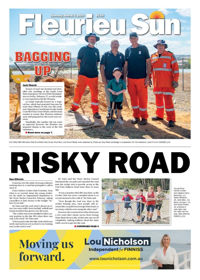 Fleurieu Sun – 5th March 2026 Subscribe or Login to see the rest of the content. Username Password * Remember Me Forgot Password News Season over for some teams 11/03/2026 Compass get by In the last minor round of cricket for the season and last match for Victor Harbor, finals bound Mount Compass did what... Hoffmann’s heroics not enough for Bays 11/03/2026 With the first day rained out, the A grade match between Noarlunga and Encounter Bay was turned into a 40 over one-day game. Noarlunga... Graham collects five-wicket haul for McLaren 11/03/2026 Willunga won the toss and batted first in the cross-town battle with local rivals McLaren Districts. A washed out week one left for an...