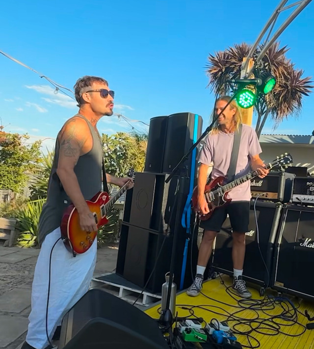Daniel Johns soundchecks with The Lizards - including lead singer Pat Ramm, pictured - ahead of their show paying tribute to Silverchair's album 'Frogstomp' at Port Elliot. (Instagram/danieljohnshq)