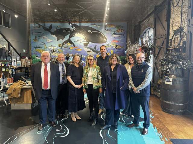 Richard Foggo (Business Victor Harbor Board Member), Colin Shearing (Business Victor Harbor Executive Officer), Victoria MacKirdy (City of Victor Harbor CEO), Moira Jenkins (City of Victor Harbor Mayor), Mark Przibilla (City of Victor Harbor Manager City Activation), Minister Zoe Bettison, Anna Kantilaftas (City of Victor Harbor Team Leader Visitor Engagement), Stuart Riddell (Business Victor Harbor Board Member).