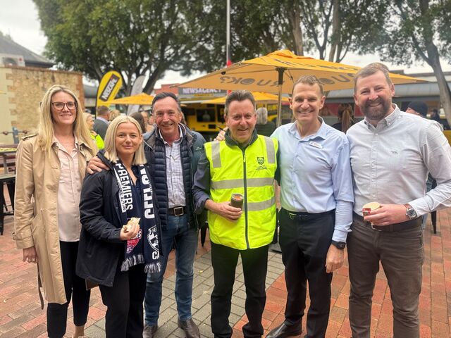 Alexandrina Council staff enjoy a morning coffee with the R U Ok? Conversation Convoy. (Alexandrina Council)