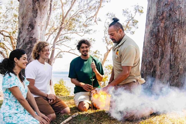 Respected Quandamooka Elder Matt Burns shaing the ancient stories and cultural wisdom of North Stradbroke Island (Minjerribah) through ithe Goompi Trail.