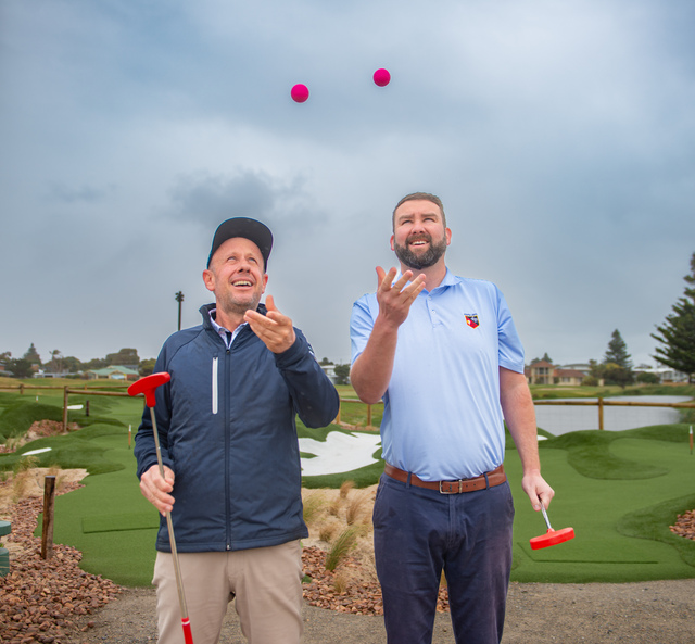 South Lakes Director of Golf Steve Capon and South Lakes Golf Club Manager Chris Bailey are ready for a round on the new Shanx Mini Golf Course. (Jack Church)