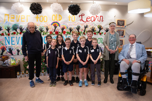 Estia residents Dean, Anne, and Mike with their young friends from EFS Ellie, Jackson, Sierra, Lewis, Huxley, Rory, Hugo, and Ryan. (Dani Brown: 520261_01)