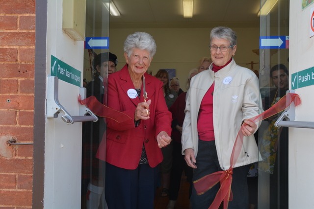 Cutting the ribbon at Middleton Arts and Crafts are Lorraine Kastberg and Jacqui Hann,