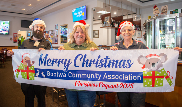 Dylan Apap of the Goolwa Hotel with Marie Wall and Karyn Staite of the Goolwa Community Association, who are ready for this weekend's Goolwa Christmas Pageant. (Jack Church)