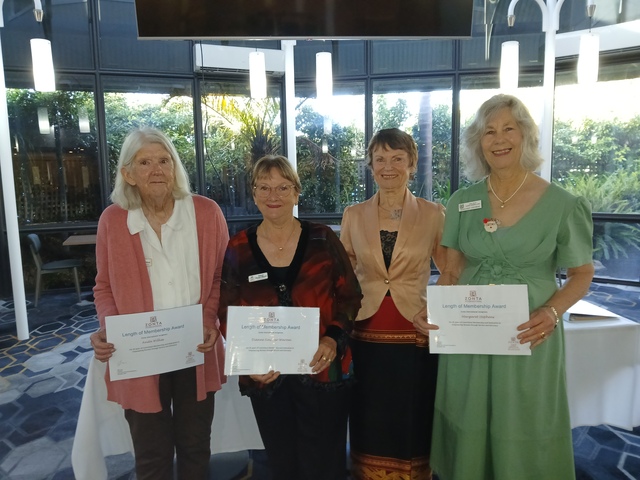 Zonta Service Awards were presented to Anita Williss, Dianne Sinclair-Warren and Margaret Stephens by vice president Christine Trenorden (second from right).