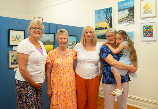 Artists Tarissa Shepherd, Chris Munro and Jackie Pomery with Middleton Arts and Crafts President Jacquie Hann and grand daughter Amelia Hann. (Jack Church)