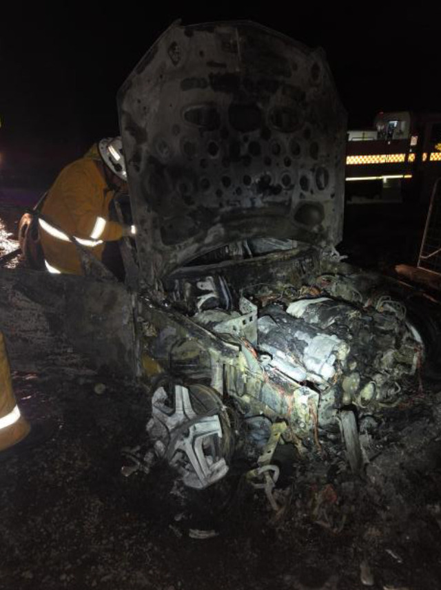 Suspicious car fire spreads to grass