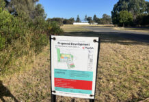 An A4-sized sign at the current entry to the proposed Sport and Recreation Precinct in Victor Harbor tells the public that consultation is open...