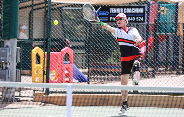 The athleticism of Port Elliot's Tony Crosby was on display on Saturday as he hits a forehand. (Jesse Ehlers).